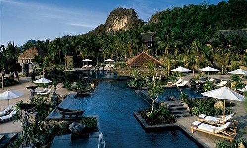 The Four Seasons Langkawi is a five-star paradise located on the white sands of Tanjung Rhu, one of the best beaches on the island. The resort offers 91 pavilions and villas set amid lush tropical foliage or on the beachfront. All rooms are exquisitely styled with timber flooring, Spanish marble bathrooms, Malaysian artwork, and open-air verandahs. Guests can enjoy the resort’s extensive services and facilities like guided nature walks, yoga classes, children’s’ activities, kayaks, windsurfers, snorkeling equipment, and two outdoor pools with poolside amenities.